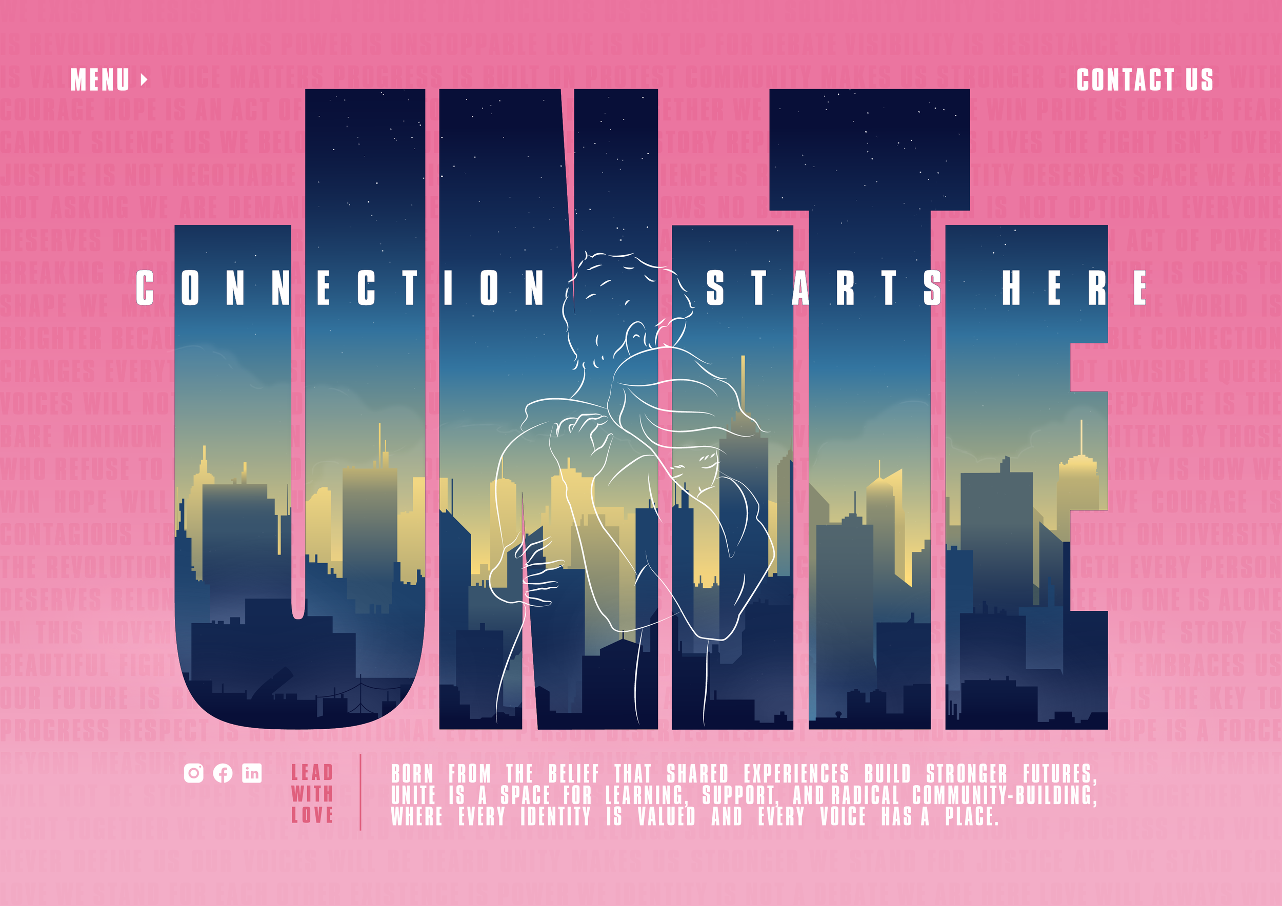 Unite is a faux charitable organisation for the trans-community, bringing people together both online and offline into major city groups to organise networking, dating and friendship building. It would also work to share helpful resources for the community.
